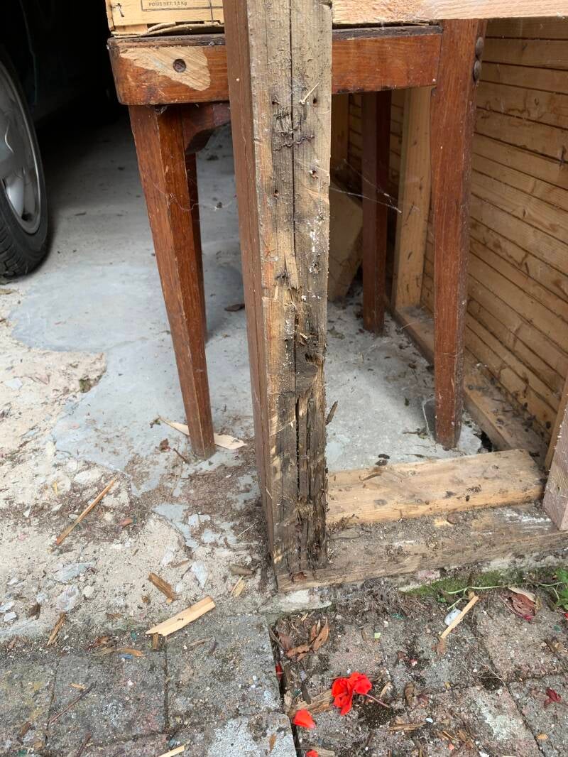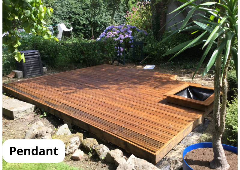 Lames de bois et lambourdes démontées et récupérées d'une ancienne terrasse.