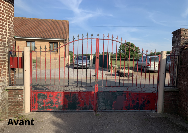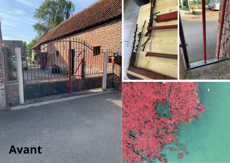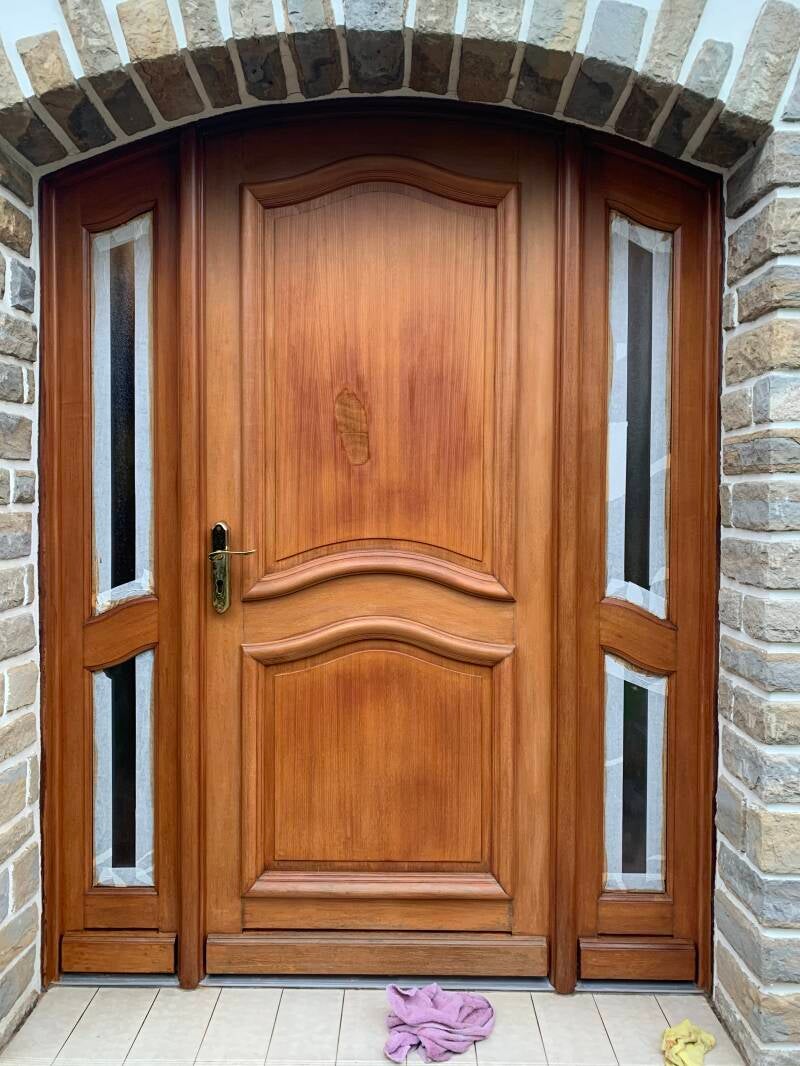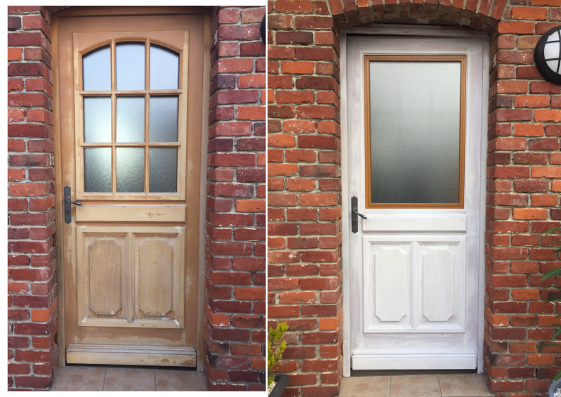 Décapage et ponçage complet intérieur et extérieur, remise en peinture glycéro (SEIGNEURIE) en 3 passes, création d'une boite aux lettres intérieure, création d'une trappe coulissante extérieure pour ventilateur.
