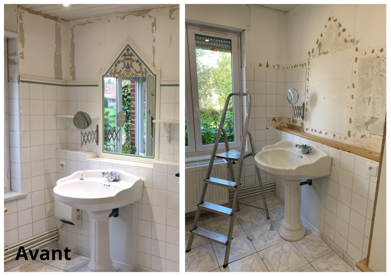 Remplacement du Lavabo colonne par vasque sur meuble.