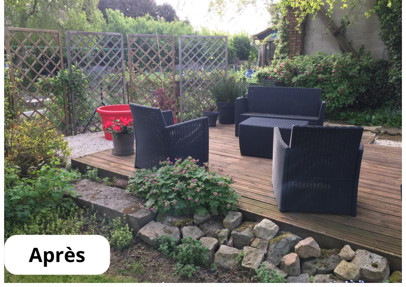 Pose de claustras ajourés (occasion) pour créer un espace cocooning et faciliter le développement de différentes clématites.