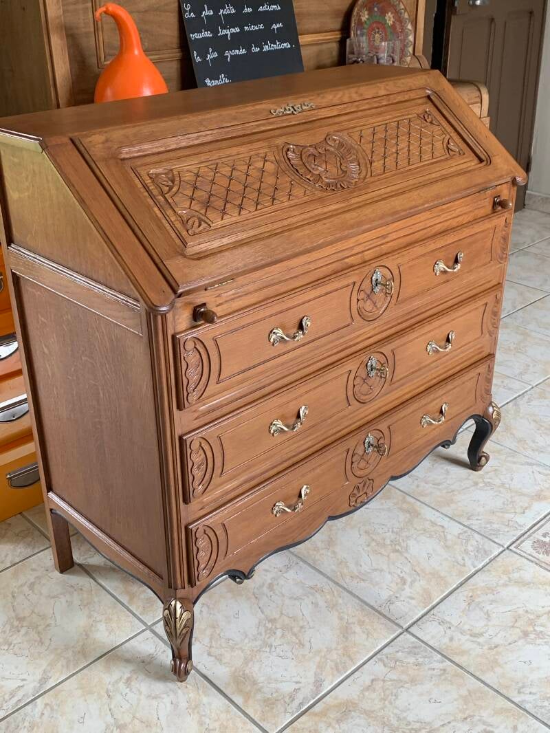 Secrétaire chêne massif d'inspiration Liégeois style Régence.